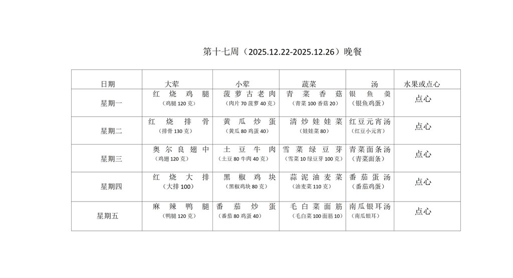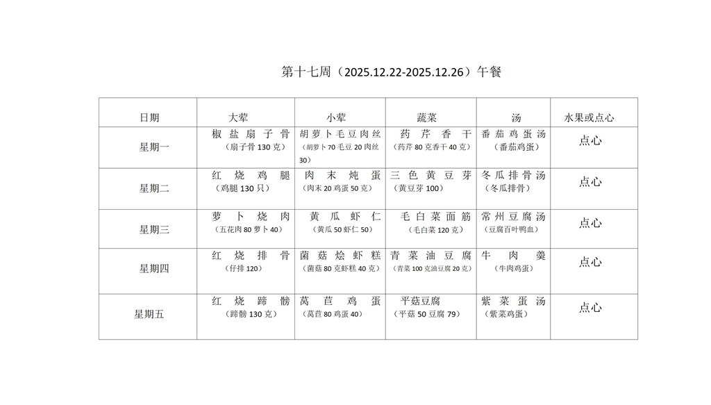 正衡中学天宁分校2025-26学年第一学期第十七周菜单