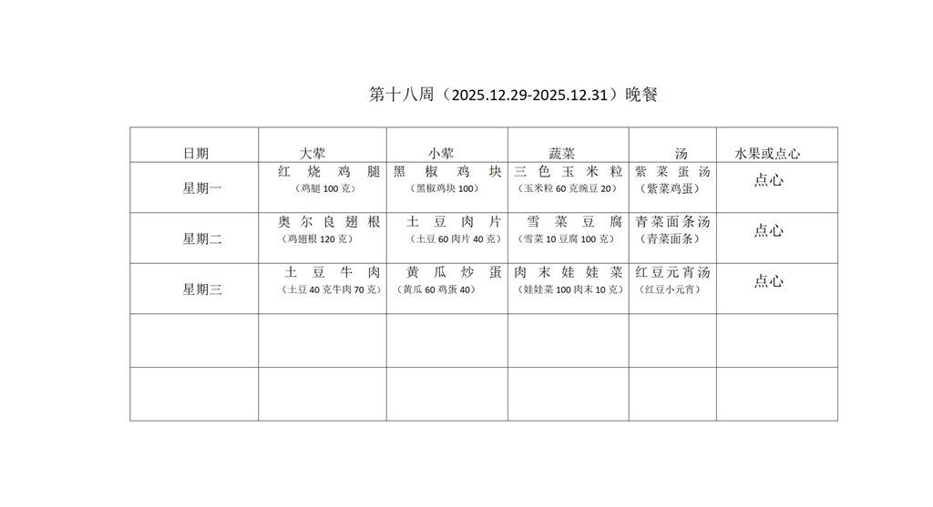 一周食堂菜单
