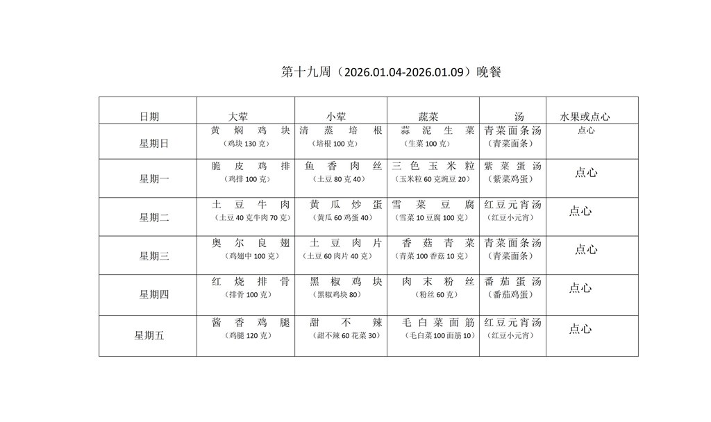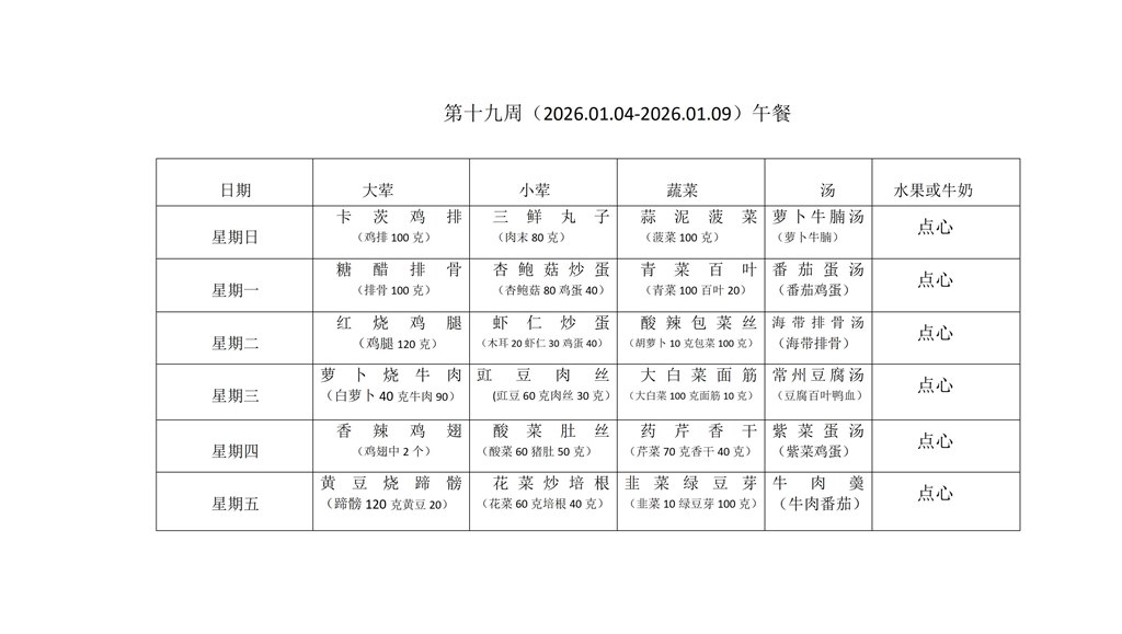 正衡中学天宁分校2025-26学年第一学期第十九周菜单