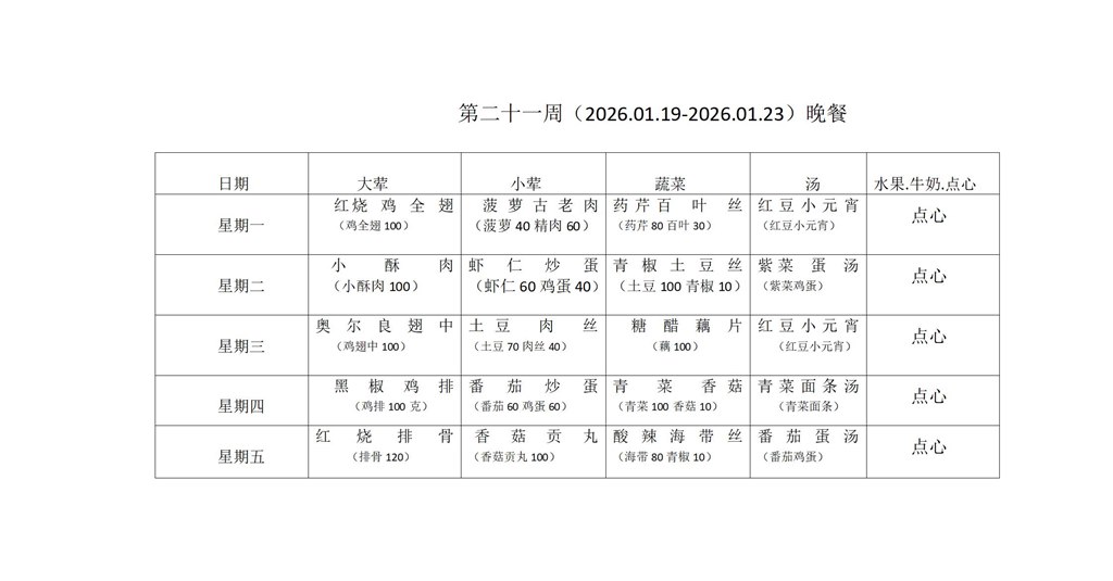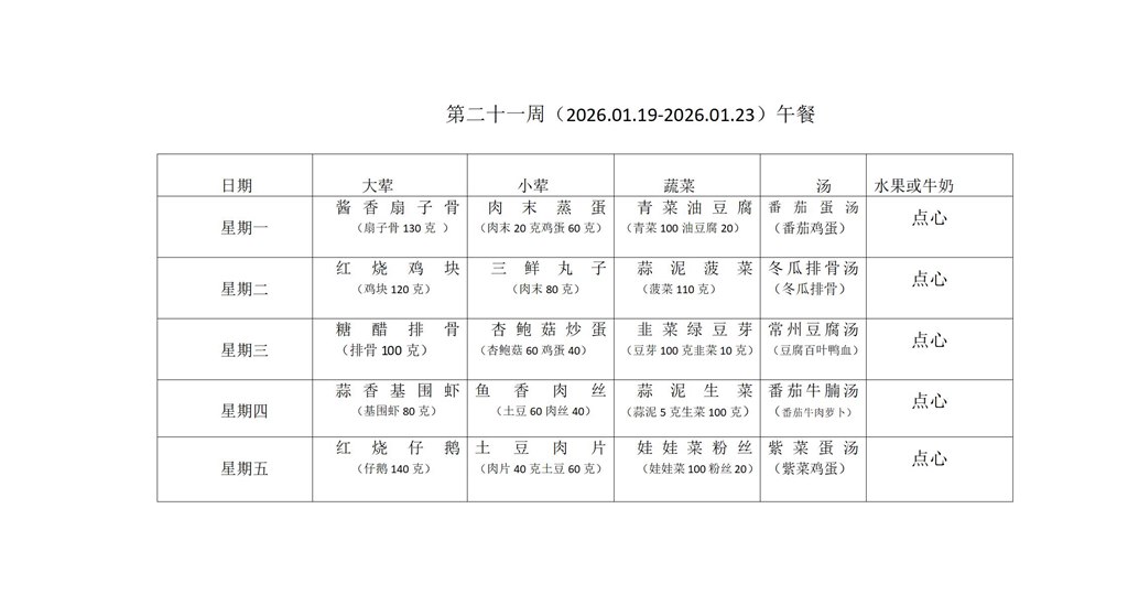 正衡中学天宁分校2025-26学年第一学期第二十一周菜单