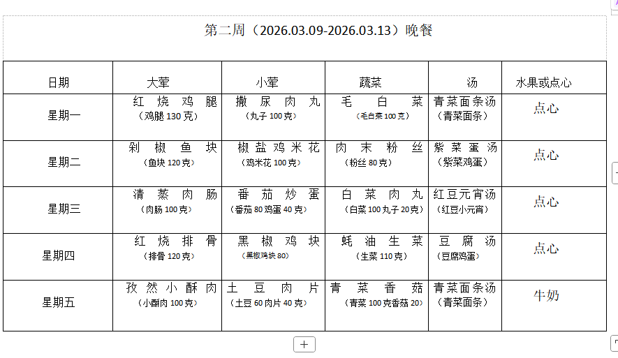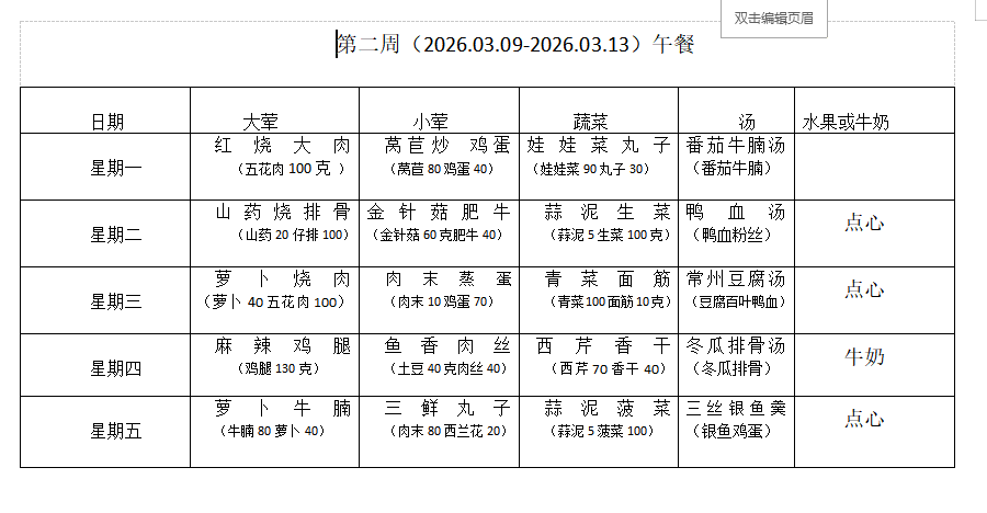 正衡中学天宁分校2025-26学年第二学期第二周菜单